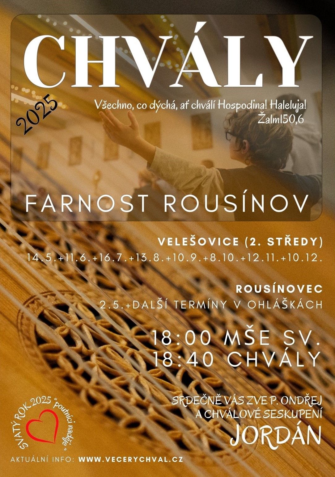 Zveme k nám i jiná chválová seskupení (16.7. 2025 společenství Nárožní s Ondřejem Veselým, 13.8. 2025 Útočiště s Vendy Nečesalovou).