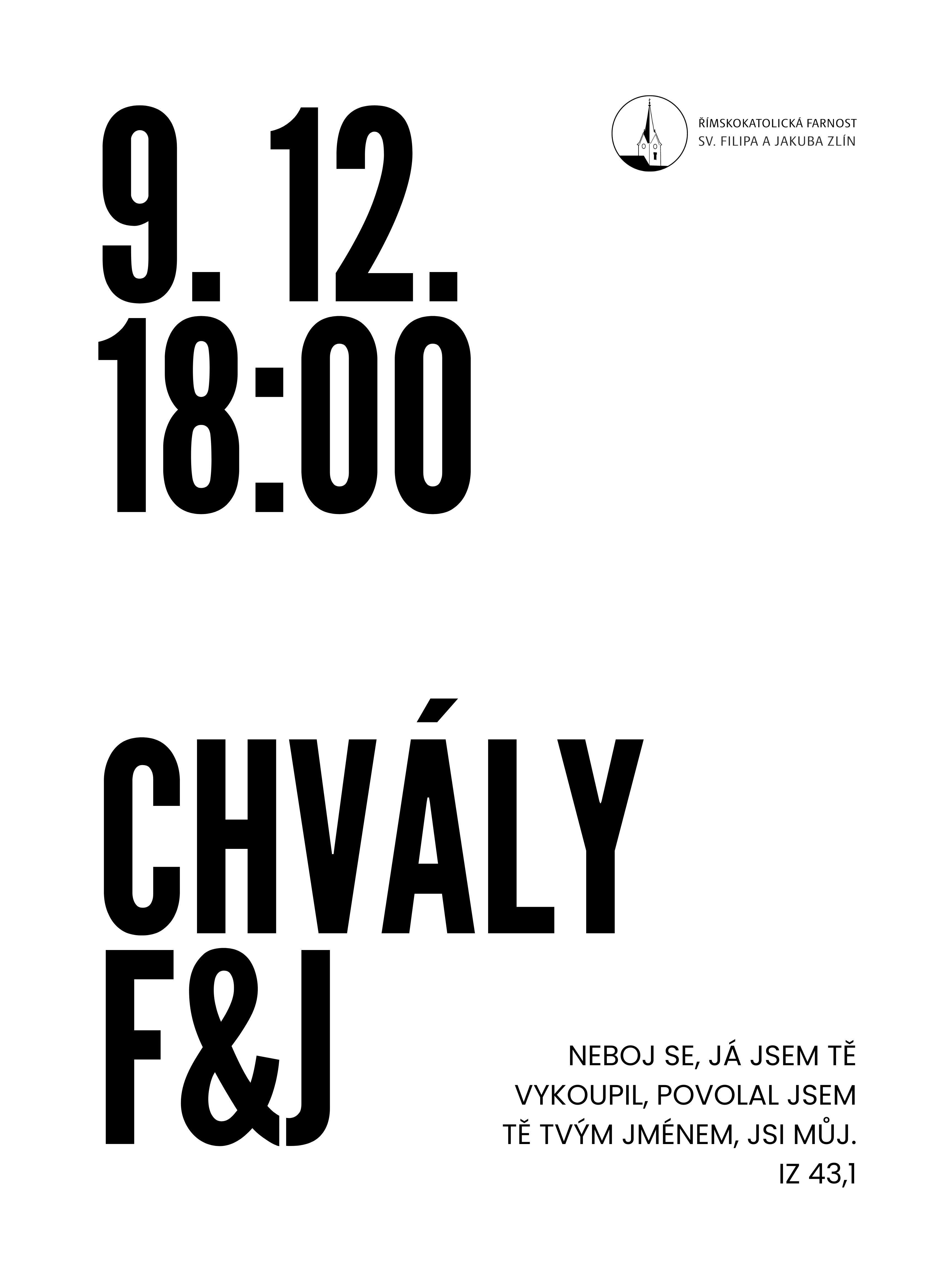 Již v úterý 9. 12. 2025 od 18:00 Vás zveme společně na večer chval v kostele sv. Filipa a Jakuba ve Zlíně.